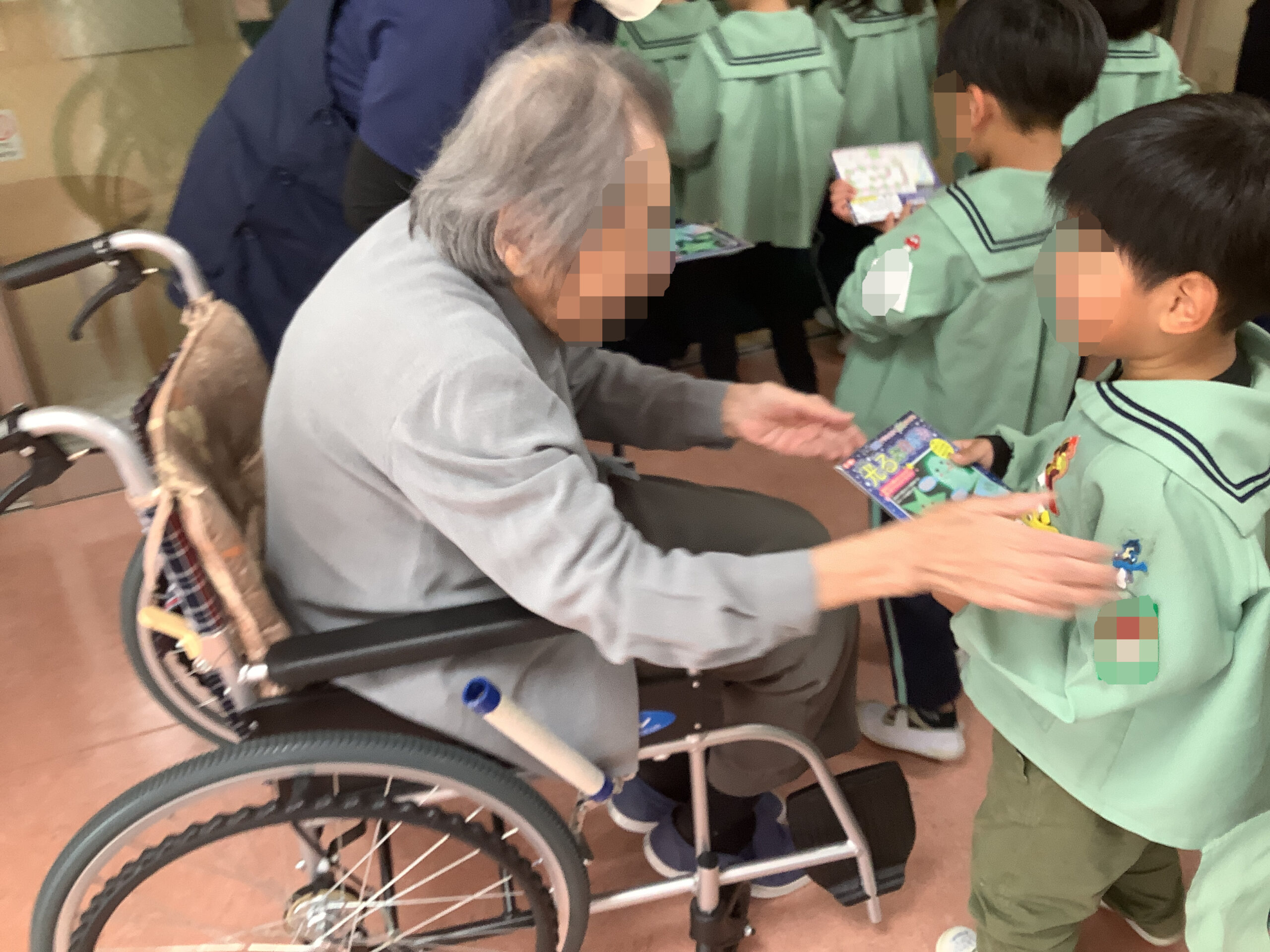 入居者の皆さまは、子どもたちの姿を見ると表情がふっと柔らかくなり、「かわいいねぇ」「よく来てくれたね」と嬉しそうに声をかけていました。