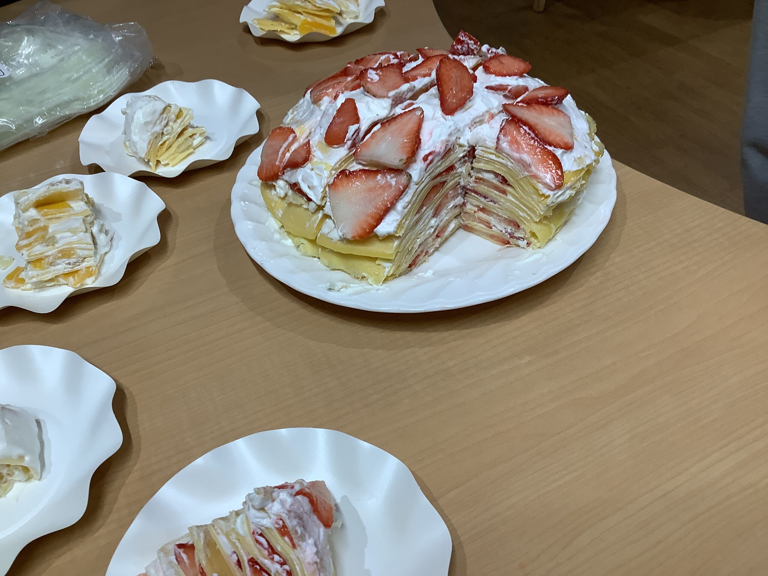 皆さまでミルクレープを作りました。今回は「苺が食べたい」とのリクエストがあったので苺たっぷりのミルクレープにしました。